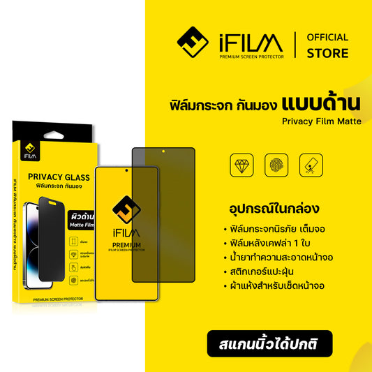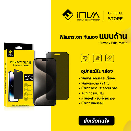 iFilm ฟิล์มกันมอง ผิวด้าน Matte AG Privacy For iPhone Series 9H ฟิล์มกันเสือก Privacy ฟิล์มกันรอย หน้าจอ ฟิล์มส่วนตัว
