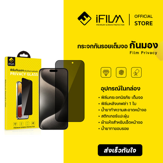iFilm ฟิล์มกันมอง ไร้ขอบดำ For iPhone Series 9H ฟิล์มกระจก กันรอย ส่วนตัว ฟิล์มกันเสือก Flim HD Privacy