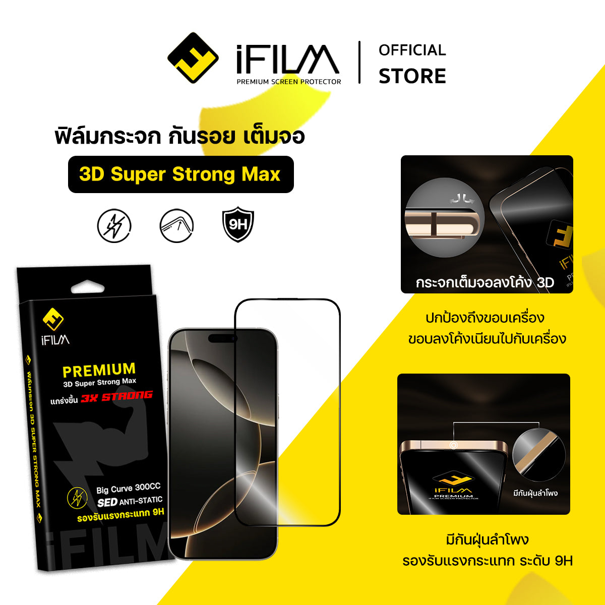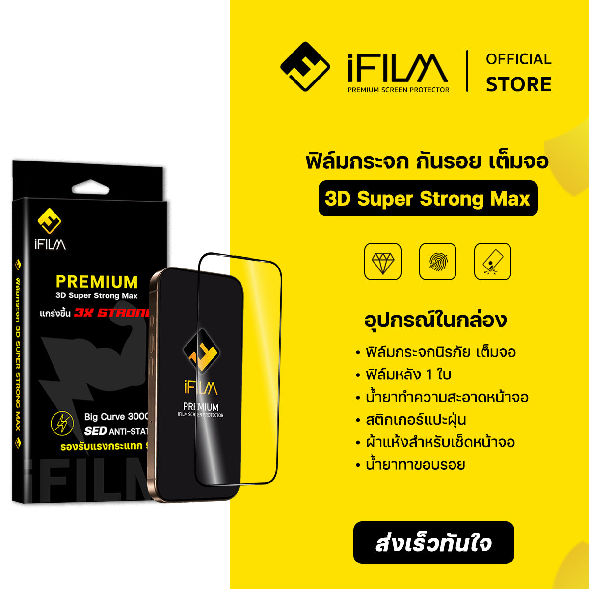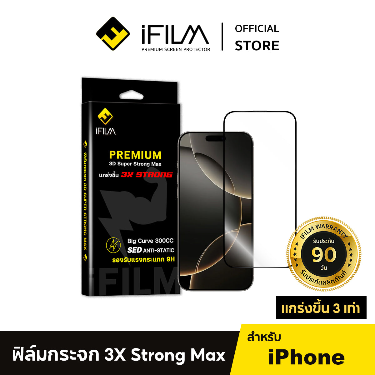 iFilm ฟิล์มกระจก เต็มจอใส 3X Strong For iPhone Series ฟิล์มกันรอย ปกป้อง หน้าจอ / รับประกัน90วัน