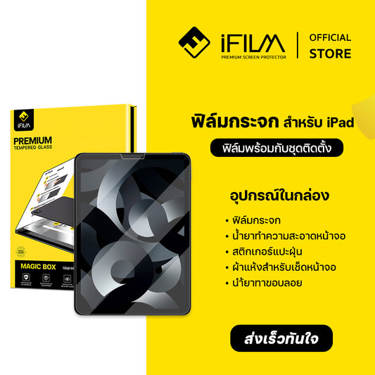 iFilm ฟิล์มกระจก ใส HD + Magic Box For iPad Air 7 / Air6 / iPadPro 11 / 13 / Gen11 / Gen10 บล็อกช่วยติด ไอแพด